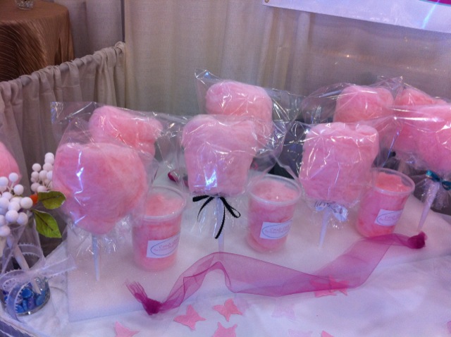 And last but not least, the coolest thing I saw at the Bridal Show I went to on Sunday. Everyone knows about candy buffets, but how about Cotton Candy Buffets? Candy Girls will provide the yummy spun goodness in any color you’d like. Great wedding favor idea, too.